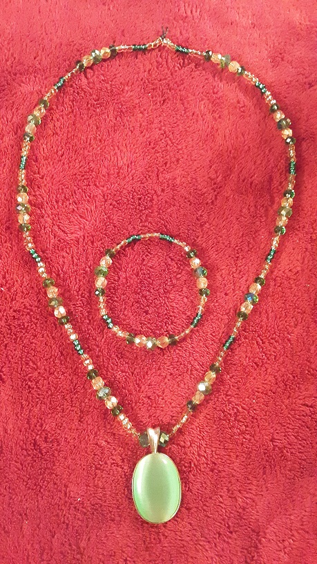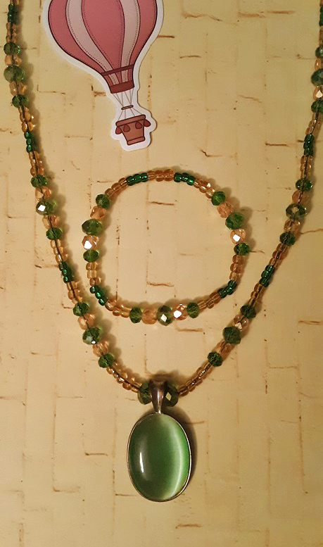 Yellow and green necklace paired with a matching bracelet. (sticker included)
