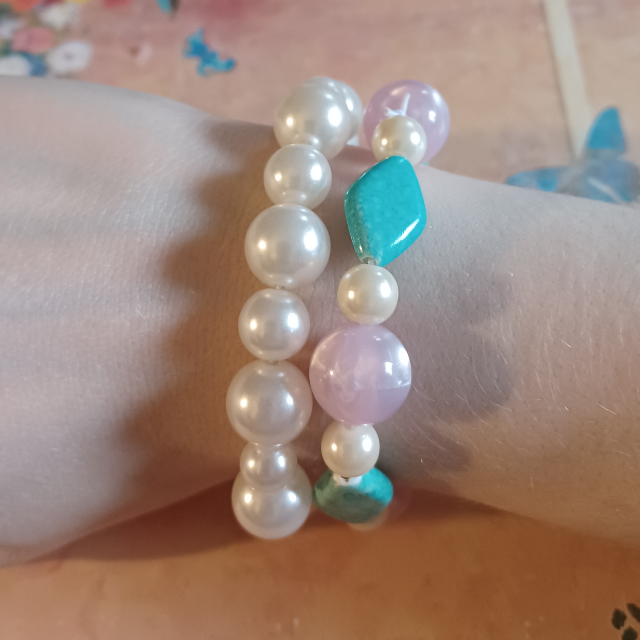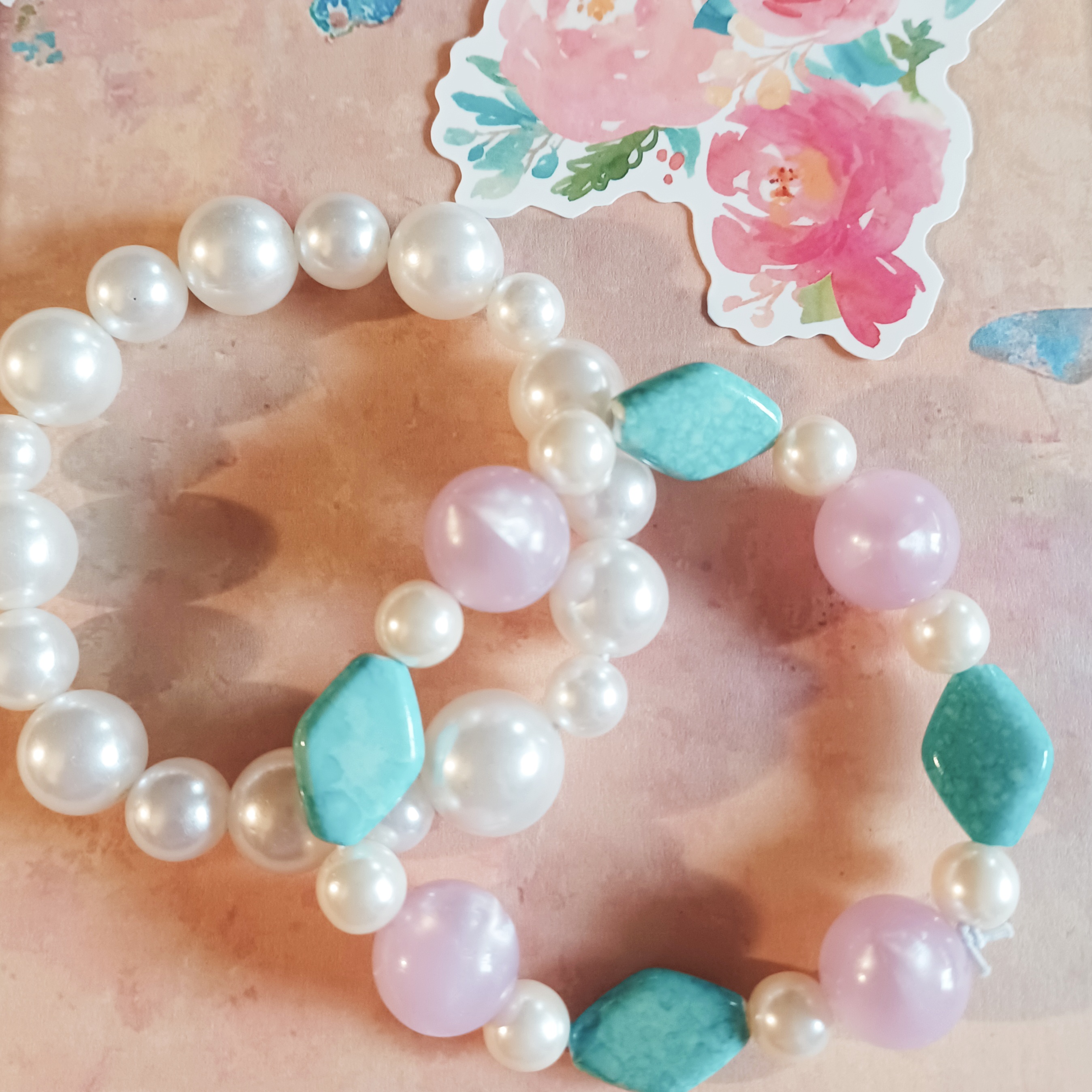 CLEARANCE "Shy Princess" turquoise color, pink, and white bracelets OOAK