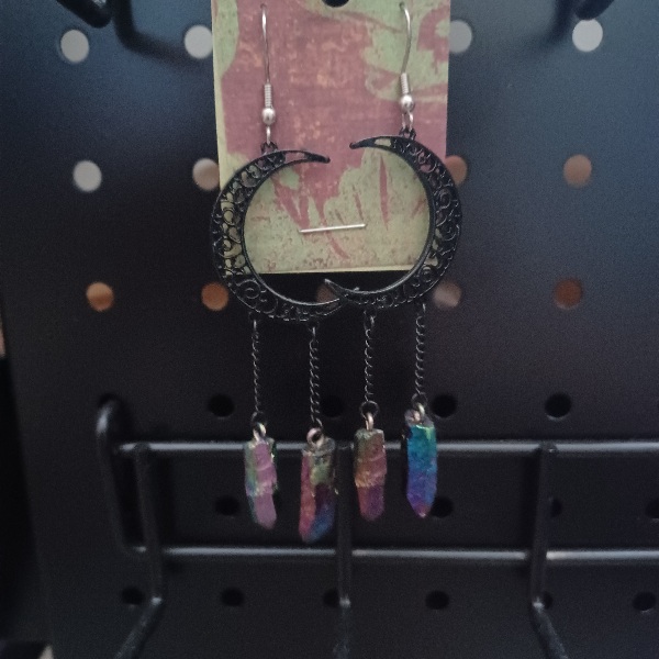 These black crescent moon earrings from Spirit Halloween are like new. The only alteration is that I've switched out their original hooks for surgical steel ones.