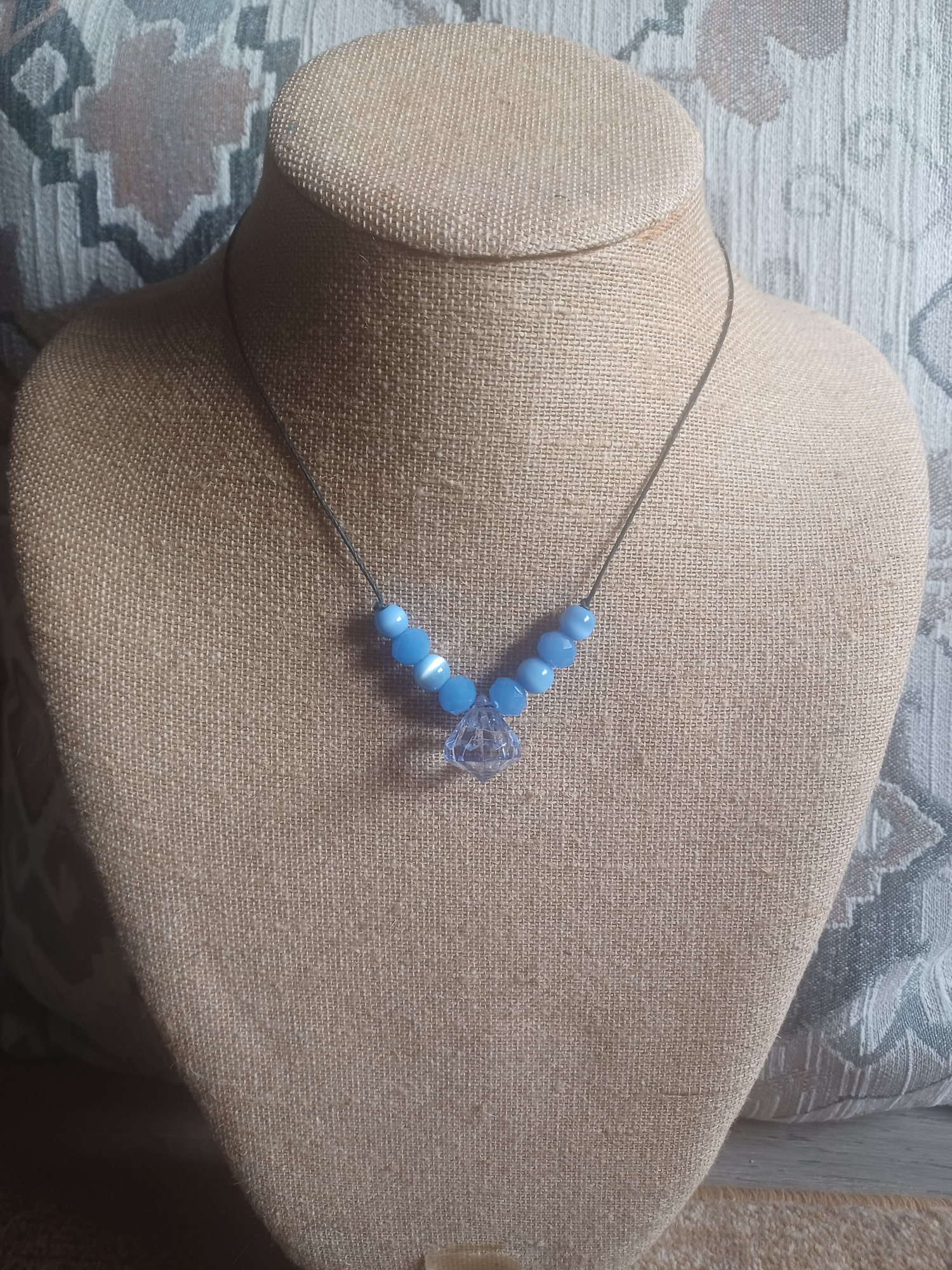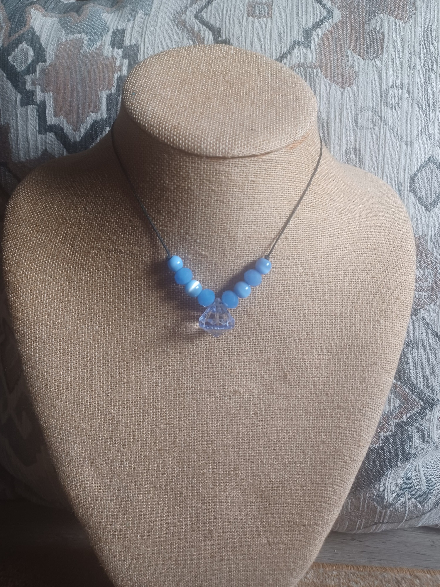CLEARANCE "Waterdrop" faceted blue necklace OOAK