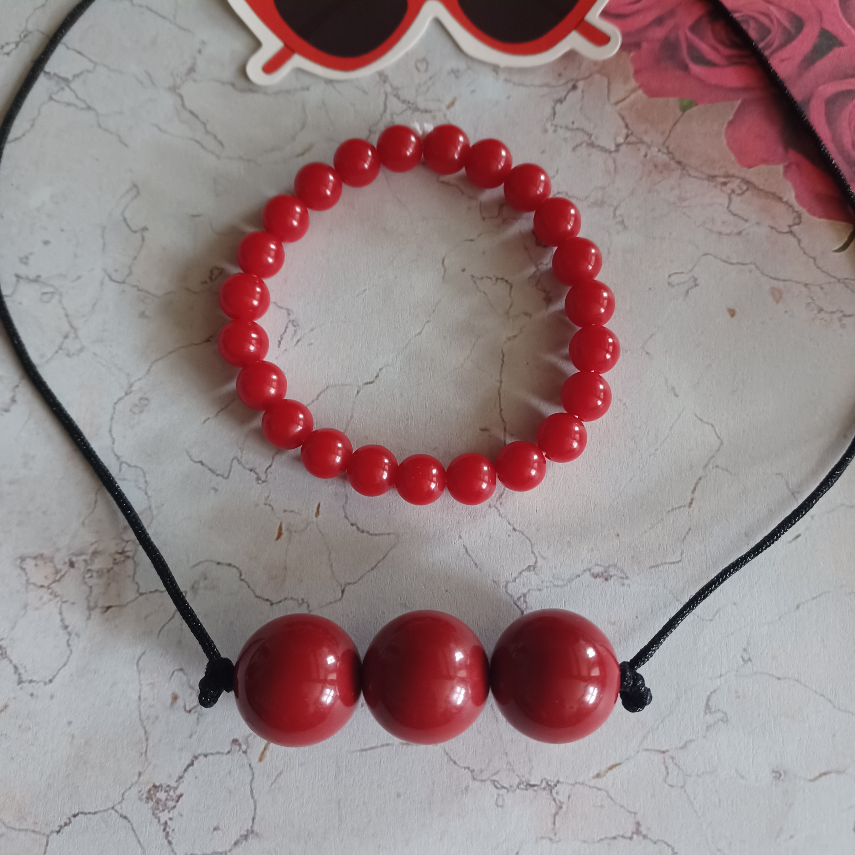 CLEARANCE "Mystery Woman" red beaded necklace + bracelet OOAK