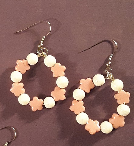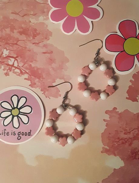 Materials: acrylic/plastic beads and surgical steel hooks (sticker included, may vary)