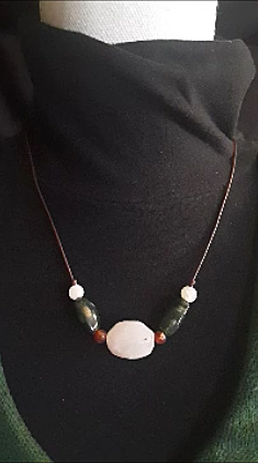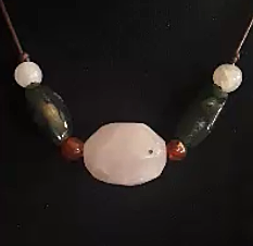 A necklace made of shiny stones on faux leather cord. (sticker included)