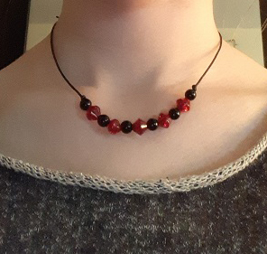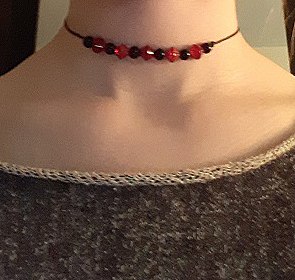 This red and black choker is adjustable, so it can glitter on a range of necks.