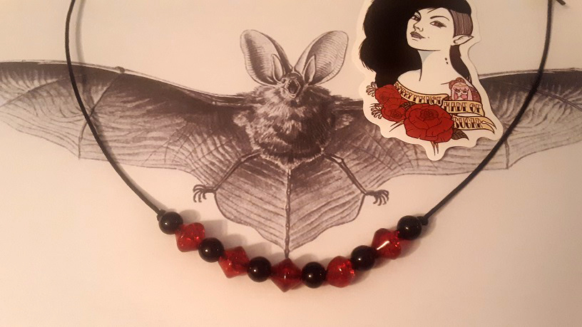 CLEARANCE "Vampire Bite" adjustable red and black beaded choker OOAK