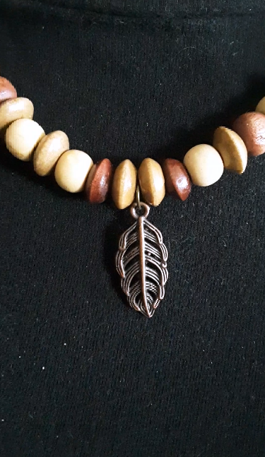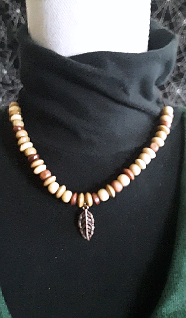 "Archer's Necklace" wooden beaded and leaf charm necklace OOAK