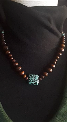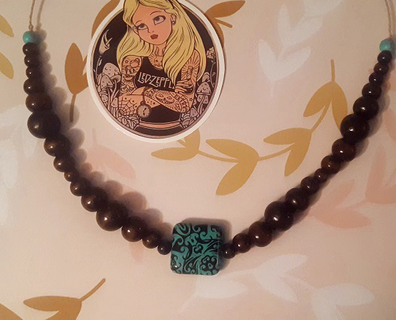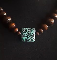 "Elf's Tattoo" wooden beaded and turquoise howlite stone necklace OOAK