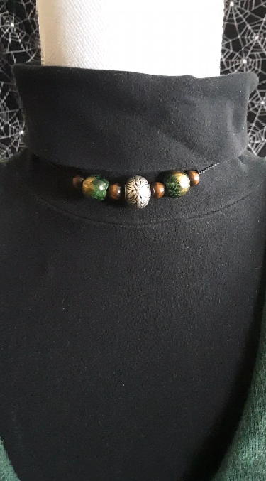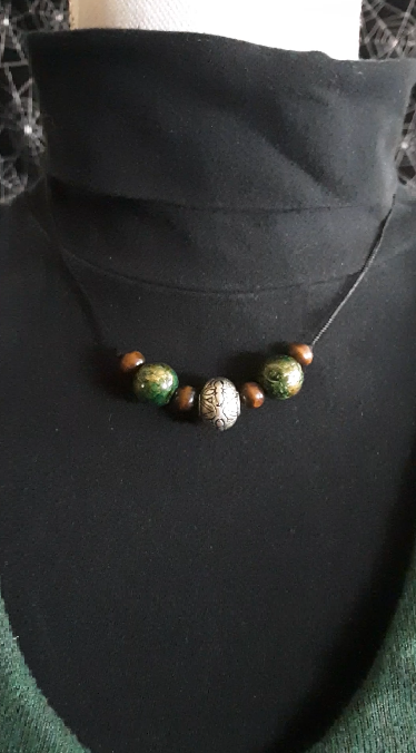 CLEARANCE "Celtic Guardian" green and wood necklace OOAK
