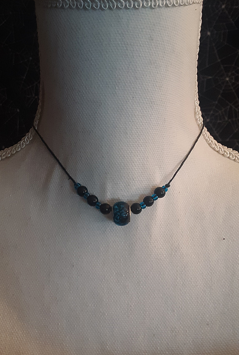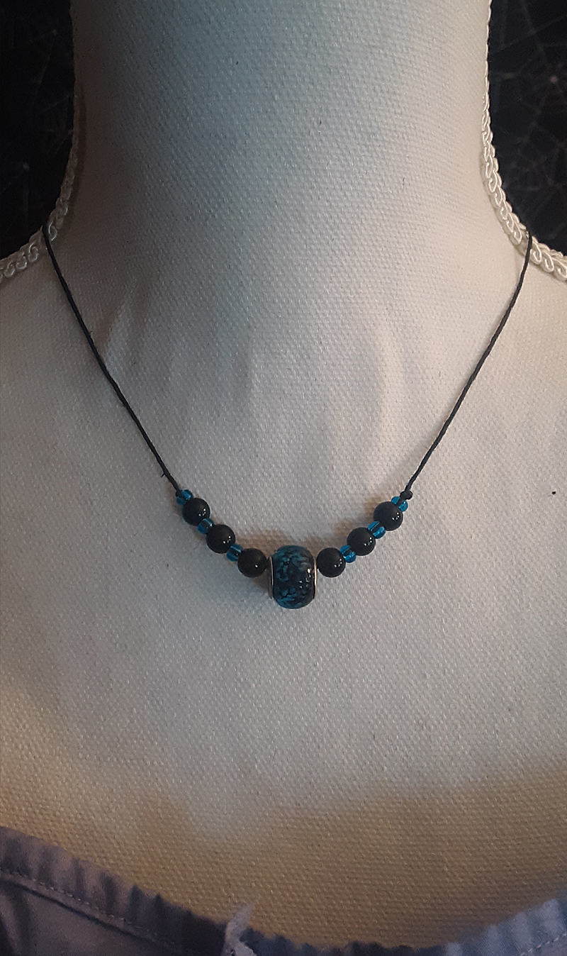 CLEARANCE "Blue is the Best Flavor" blue and black necklace OOAK