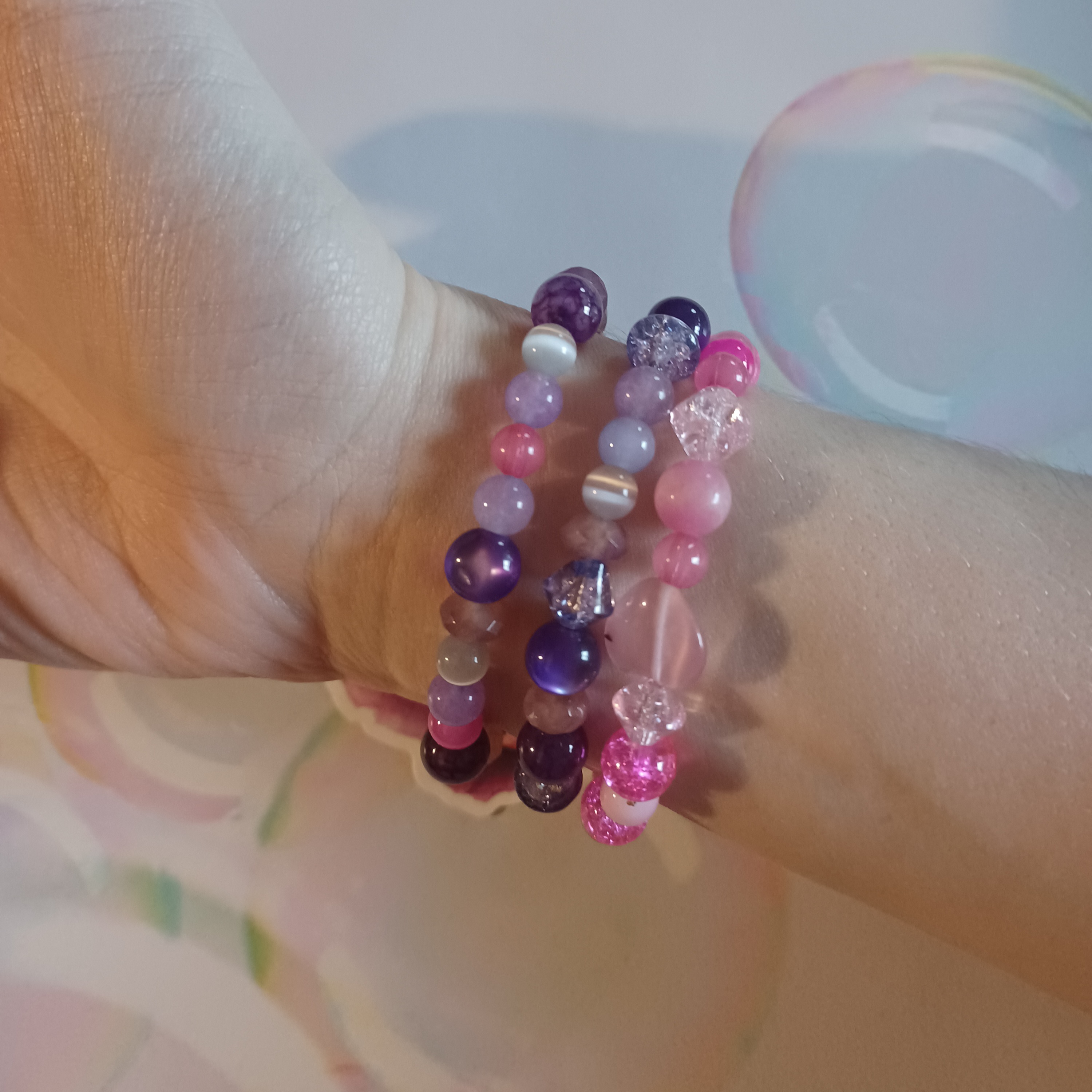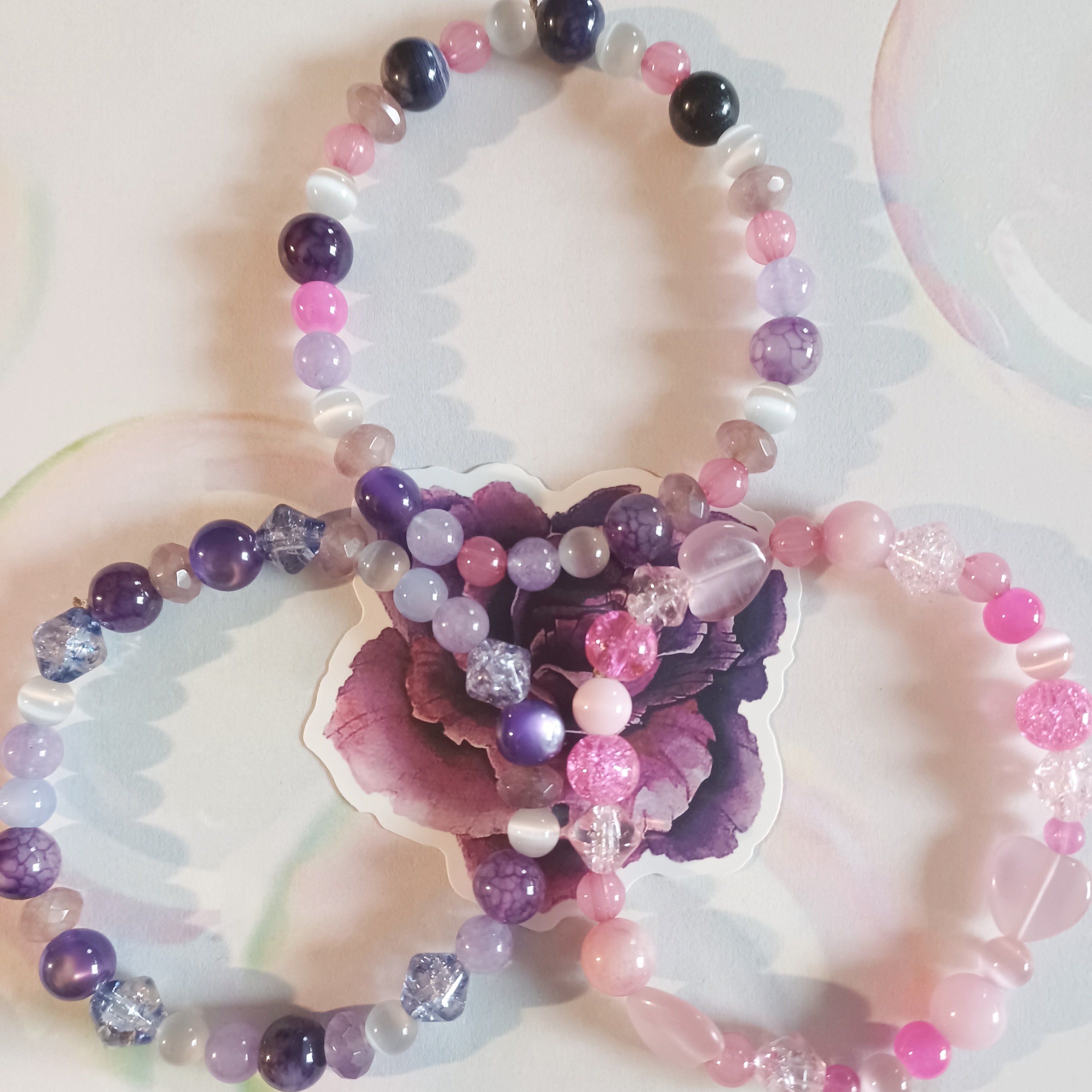 "The Fairy Sisters Harmony, Rhapsody, and Melody" purple and pink bracelet trio OOAK
