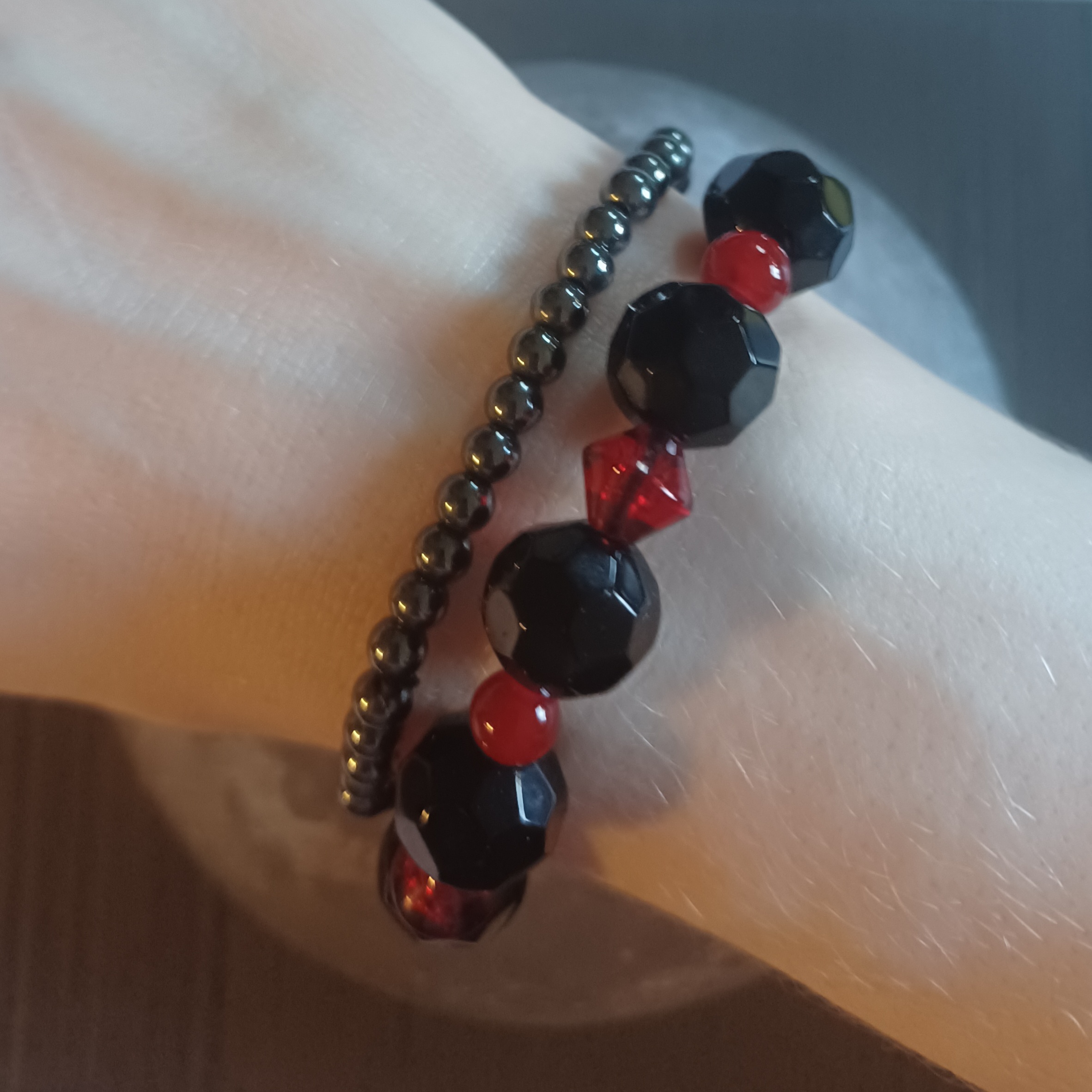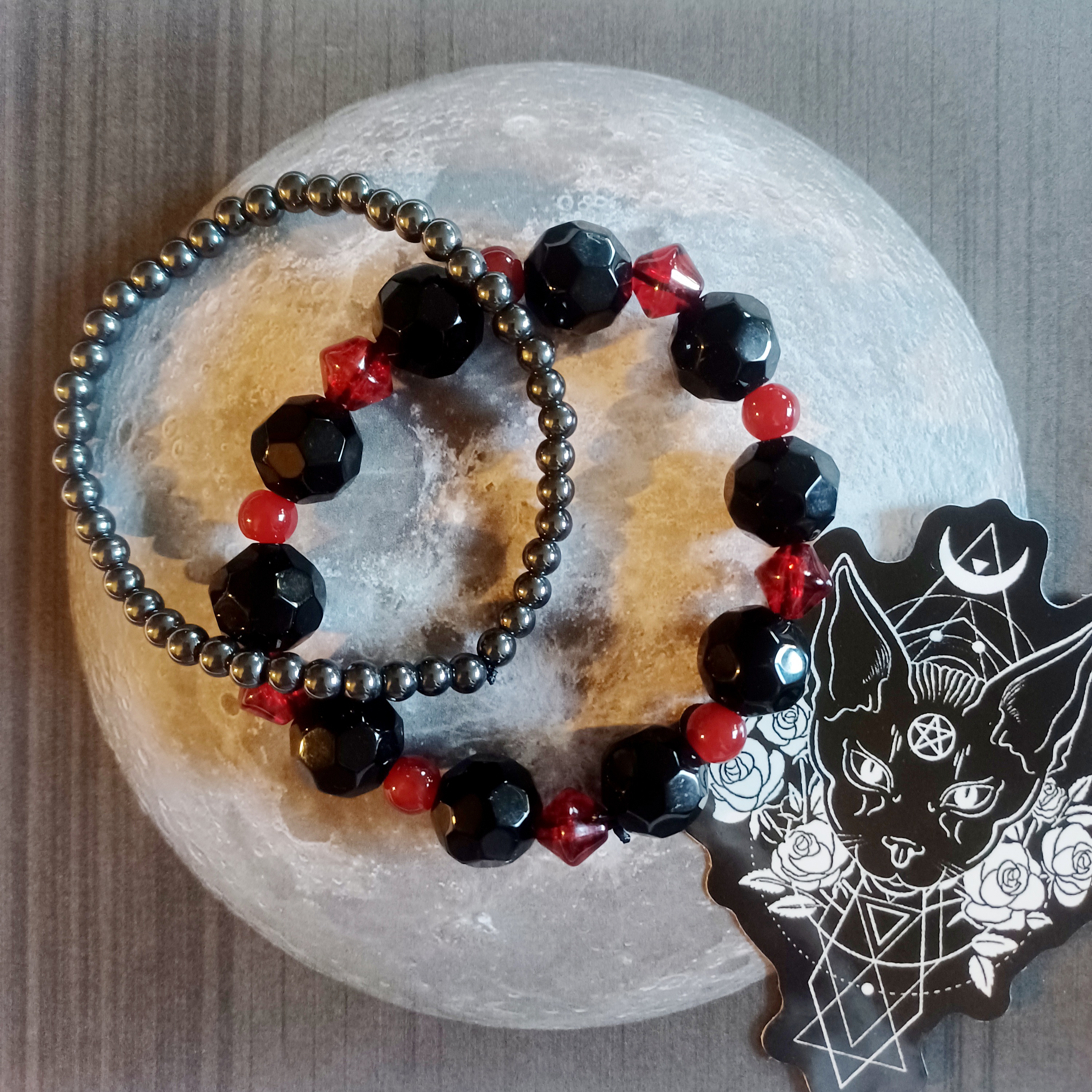 Made with glass beads and paired with a hematite companion, this is a one-of-a-kind item in the shop!