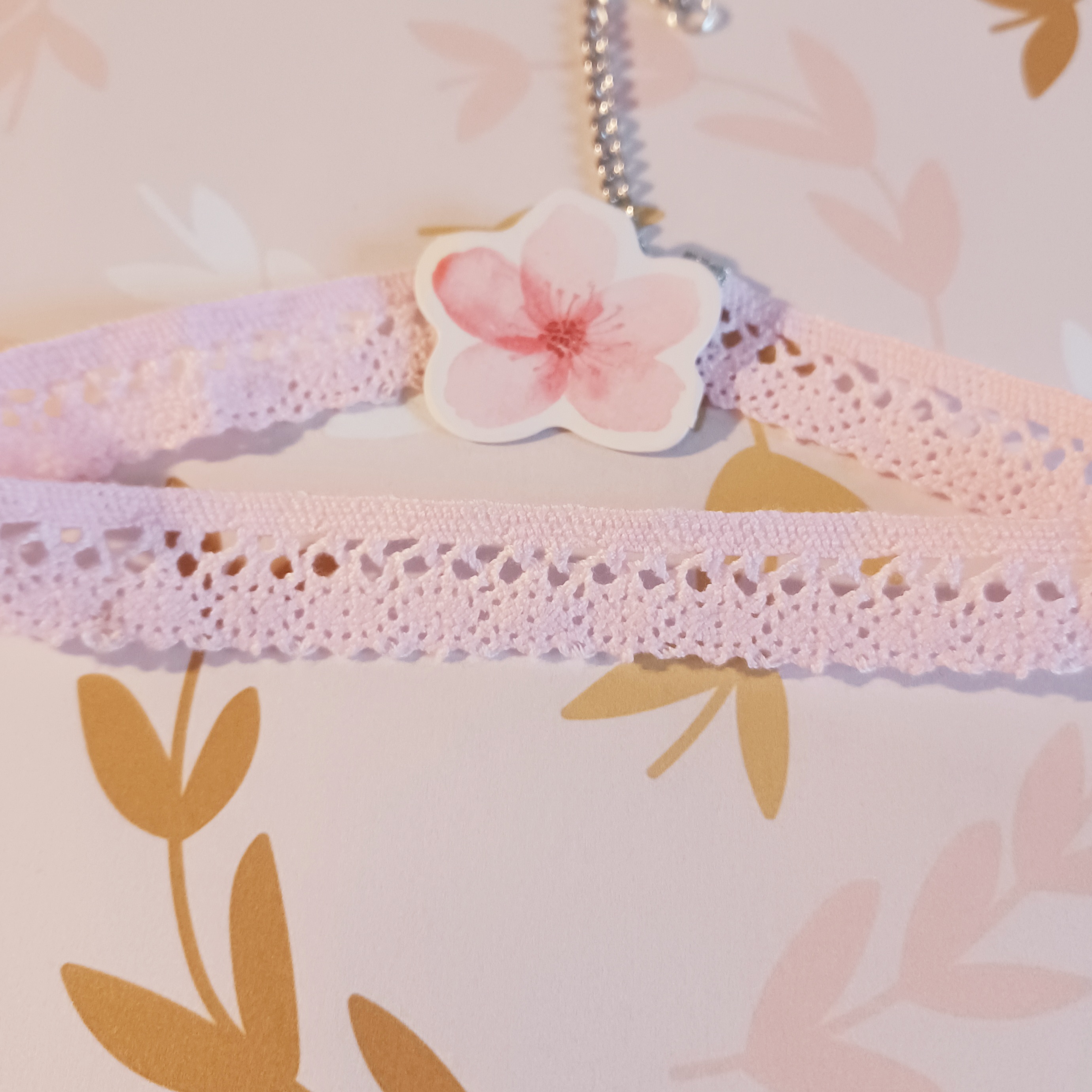 CLEARANCE "Falling Blossoms" pink lace choker