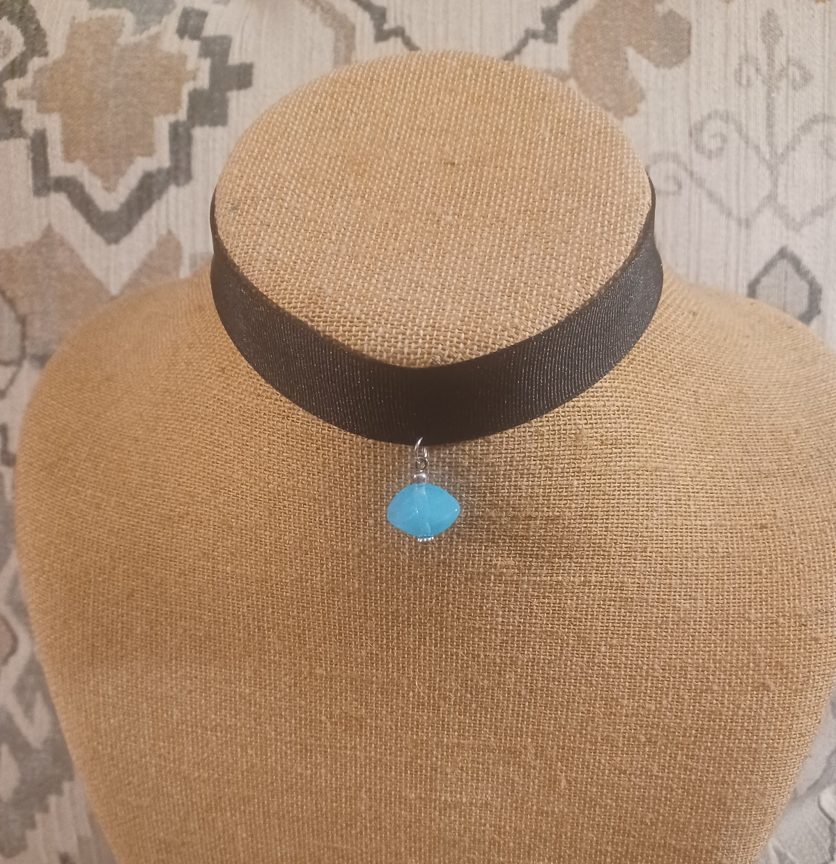 CLEARANCE "Linkle's Necklace" black choker with blue pendant OOAK