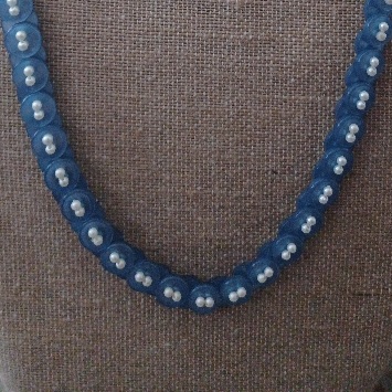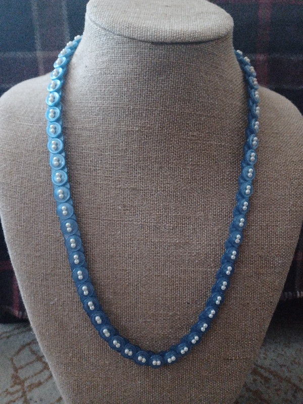 This one in particular is a unique necklace I found made up of shiny blue buttons. Have you seen anything like it?